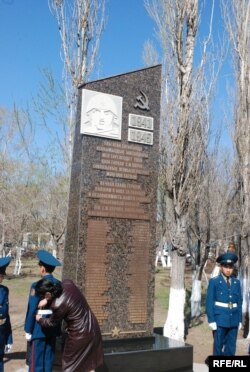 Скандал разразился в день сноса мемориала советским воинам Второй мировой войны. Это была единственная, украшавшая центр поселка стела, у которой ежегодно, 9 мая, собирались местные ветераны. Местные старожилы вызвали прессу и прямо у снесенного мемориала организовали митинг. Как рассказали жители поселка, стелу не просто снесли, а буквально захоронили на месте памятника. Вот что сообщила нашему радио Азаттык дочь ветерана войны, шестидесятилетняя Елена Воробьева: