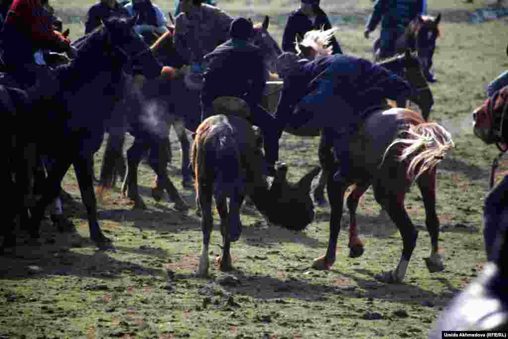 В игре кокпар участвуют, как правило, сильные и бесстрашные мужчины, которые умеют хорошо управлять своим таким же натренированным конем.