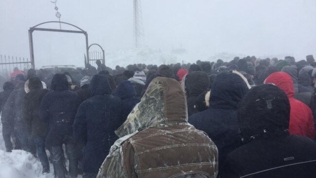 Неясно, сколько человек доставлены в полицейские участки. На похороны активиста в селе Талапкер пришли, вероятно, около тысячи человек.