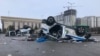 Протестующие к акимату близко не подходили, кто мог его поджечь — непонятно. Перед театром перевернули еще одну машину. Пока я наблюдал за протестующими, в перевернутую машину въехал еще один автомобиль и загорелся. Никто не приходил их тушить.