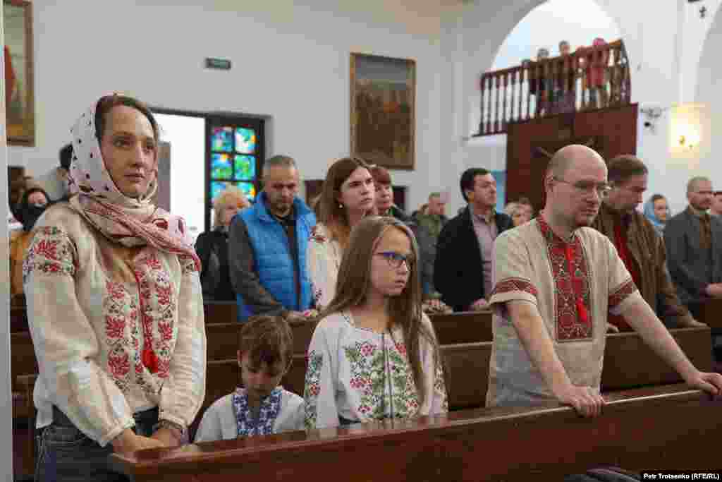 Почти все прихожане были одеты в традиционную украинскую одежду, что создавало атмосферу особого торжества и единства