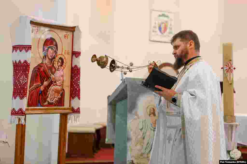 После пасхальной службы отец Олег Галушка провёл обряд причастия для прихожан