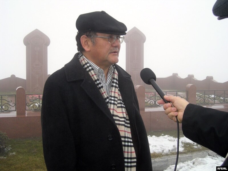 Рысбек Сарсенбайулы дает интервью у могилы своего брата Алтынбека Сарсенбаева. Алматы, 11 февраля 2009 года.