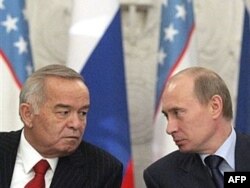 Президент Узбекистана Ислам Каримов и нынешний премьер-министр России Владимир Путин на встрече в Кремле. Москва, 6 февраля 2008 года.