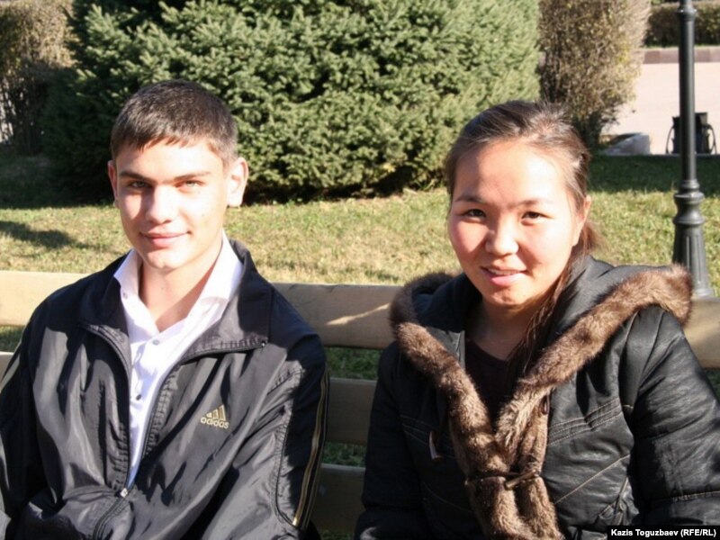 Студент Казахского автомобильно-дорожного университета Олег Усик (слева) и студентка Казахского аграрного университета Айгерим Джаппарова (справа). Алматы, 18 ноября 2010 года.