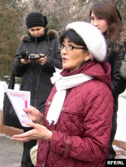Бахытжан Торегожина, руководитель организации «Ар. Рух. Хак», читает стихи на акции, приуроченной к 50-летию закрытия ГУЛАГа. Алматы, 25 января 2010 года.