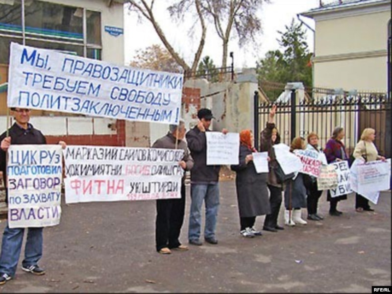 Активисты правозащитного движения проводят демонстрацию протеста у здания генеральной прокуратуры Узбекистана. Ташкент, 7 марта 2008 года.