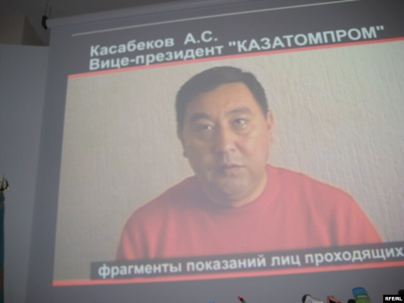 Вице-президент «Казатомпрома» Аскар Касабеков дает признательные показания против своего бывшего руководителя Мухтара Джакшиева. Видеосъемка КНБ. Астана, 1 июня 2009 года.