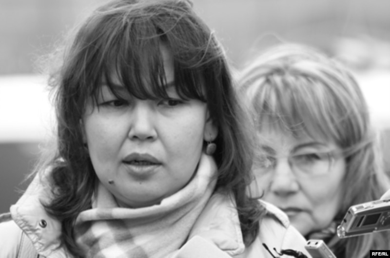Джамиля Джакишева (слева) и Сара Сагиндыкова (справа), жены осужденных по делу "Казатомпрома". Астана, 26 марта 2010 года.