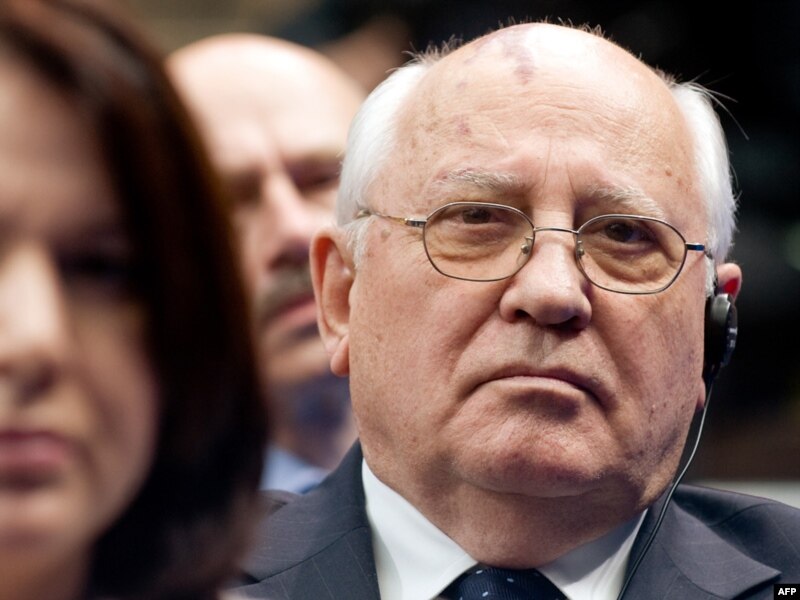 Бывший президент СССР Михаил Горбачев слушает выступление Барака Обамы в Новой Экономической школе. Москва, 7 июля 2009 года.