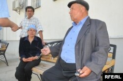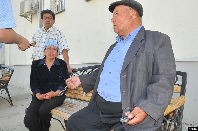 Слева направо: Кубайдолла Шолаков, Насихат Шолакова, Халидолла Шолаков, жена и братья сжегшего себя Кабидоллы Шолакова, ждут вестей от врача во дворе областной больницы. Атырау, 26 мая 2009 года.