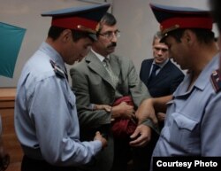 Сотрудники полиции производят арест ведущего казахстанского правозащитника Евгения Жовтиса в зале суда. Баканас, 3 сентября 2009 года. Фото предоставлено газетой "Свобода слова".