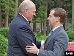 Президенты Беларуси Александр Лукашенко (слева) и России - Дмитрий Медведев. Подмосковье, 11 июня 2010 года.