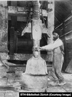 Подъем и спуск ударных инструментов происходили за счет паровых двигателей (на снимке выше), что делало обширный «лес» нефтяных вышек Баку шумным и чрезвычайно опасным местом.