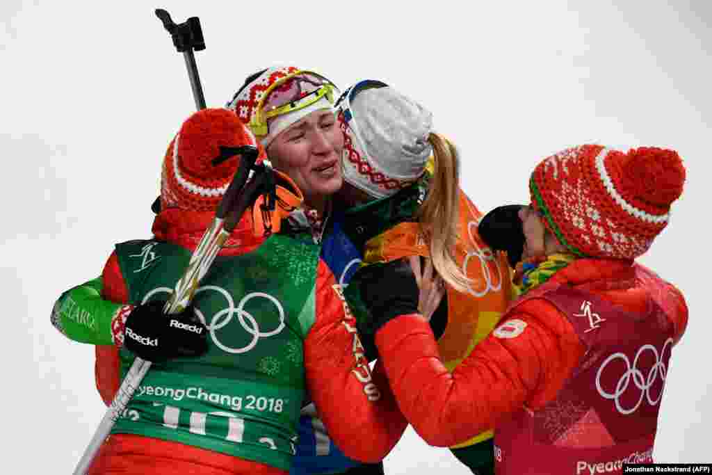 Уроженка Караганды Динара Алимбекова в составе белорусской команды биатлонисток завоевала золотую медаль Олимпиады в Пхёнчхане. Это произошло на эстафете 4 на 6 километров 25 февраля. Белорусская команда была представлена Надеждой Скардино, Ириной Кривко, Динарой Алимбековой и Дарьей Домрачевой.
