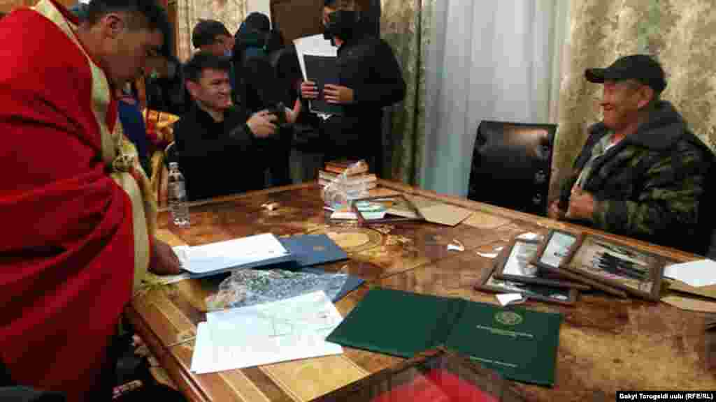 В Бишкеке несогласные с предварительными итогами парламентских выборов 4 октября в ночь на вторник ворвались в Дом правительства и заняли офис президента Сооронбая Жээнбекова. Фоторепортаж Кыргызской редакции Азаттыка.