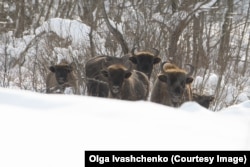 Иващенко говорит, что этот прирост численности диких зубров в Украине во многом происходит «благодаря людям, которые ухаживают за ними» в национальных парках страны.