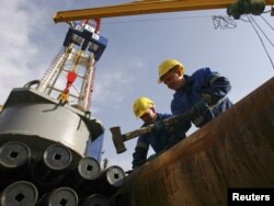 Рабочие на буровой установке на месторождении газа Сарыкамыш. Шахринавский район, Таджикистан, 7 декабря 2010 года.