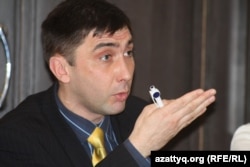 Булат Абилов, сопредседатель ОСДП "Азат", участник круглого стола на тему "Роль СМИ и НПО в освещении и соблюдений прав избирателей в зонах вне общественного контроля". Алматы, 16 марта 2011 года.