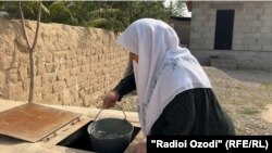 66-летняя женщина живёт в селе Хаёти Нав Хуросонского района, в 3–4 километрах от горной реки Вахш. Некоторые соседи используют насосы, чтобы доставить воду к домам, но её дом стоит на холме, и провести водопровод она не может из-за отсутствия денег. Единственный выход — покупать воду в автоцистернах.