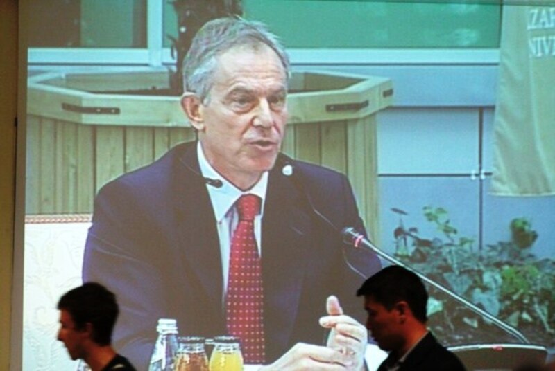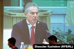 Бывший премьер-министр Великобритании Тони Блэр выступает на совете иностранных инвесторов. Астана, 18 мая 2011 года.