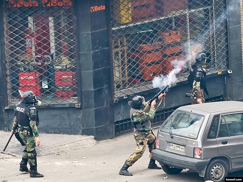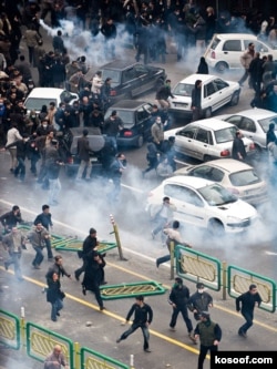 Иранские полицейские стреляют во время подавления антиправительственного протеста в Тегеране. 27 декабря 2009 года.
