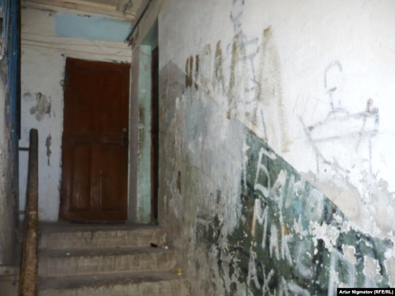 Подъезд двухэтажного дома, в котором живет Мырзабай Лесов, бастующий бывший рабочий "Озенмунайгаза". Жанаозен, 1 сентября 2011 года.