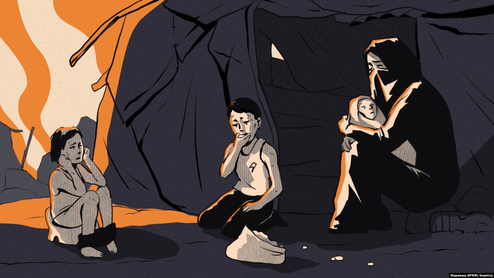 — Находил муку, пшено, вот так и выживали. Начал искать пути, подрабатывал, чтобы еще скопить денег на выезд. Я просила родителей переслать деньги для того, чтобы выбраться отсюда, но у них не было таких денег, да и побоялись они: ведь это расценивается как финансирование террористов. В 2019 году мы выехали, решили сами сдаться курдам, но не успели: на него упала бомба и убила прямо на моих глазах. Пришлось дальше выживать. Мы уже в то время жили в палатках, в окопах. Это был страшный период голода и бомбежек, негде было находить еду. Находили отруби, их приходилось есть, отчего потом у детей были понос и рвота. Я познакомилась с двумя женщинами-дагестанками, мы договорились, что пойдем сдаваться курдам. Боялись, конечно, но решили: будь что будет, оставаться было невыносимо, мы вышли, — говорит Айгерим.