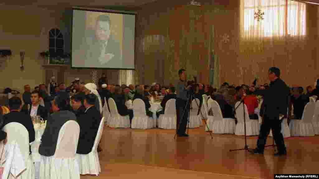 Мерей, дочь Заманбека Нуркадилова, у портрета своего отца на поминках в честь его 70-летия. Алматы, 17 января 2014 года.