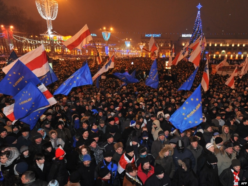 Акция протеста сторонников оппозиции Беларуси против проходящих президентских выборов. Минск, 19 декабря 2010 года.
