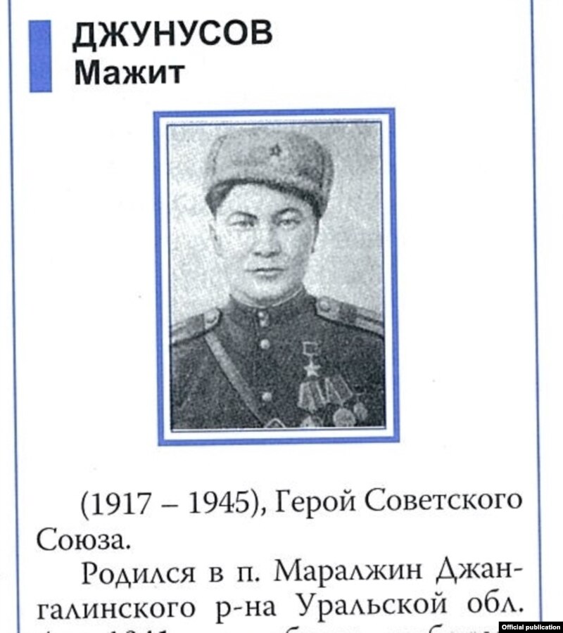 Мажит Жунусов в составе 303-й стрелковой дивизии 57-й армии 2-го Украинского фронта участвовал в освобождении Украины, Молдавии и Чехословакии. За мужество и героизм, проявленные во время битвы за Днепр в 1943 году, Мажит Жунусов был удостоен звания Героя Советского Союза. Молодой казахский солдат погиб 9 мая 1945 года при освобождении столицы Чехословакии - Праги.