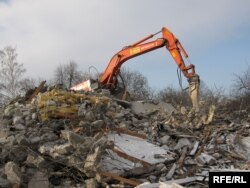 Хозяйка дома Людмила Роман в этот момент молча наблюдала за тем, как рушится ее жилье. Корреспондент Радио Свобода спросил ее, что предпринималось для того, чтобы не допустить разрушения дома.