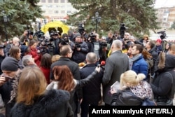 Остальные члены украинской делегации на автомобиле Ростовского консульства приехали к зданию суда, где уже рано утром выстроилась очередь из журналистов, желавших попасть на процесс. По данным пресс-службы суда, на оглашение приговора аккредитовалось более ста СМИ. Для их проверки перед судом поставили палатку, где полицейские с собаками осматривали вещи, камеры и штативы. Еще раз журналистов проверяли уже на входе судебные приставы.