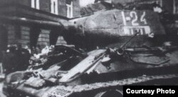 Танк лейтенанта Ивана Гончаренко вскоре после боя в Праге 9 мая 1945 года. Фото с сайта www.zanikleobce.cz