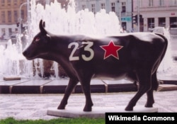Еще одна история вокруг легендарного танка лейтенанта Ивана Гончаренко случилась летом 2004 года. В Праге тогда была проведена культурная акция Cow Parade – «Парад коров». В центре города были выставлены пластиковые фигуры коров и быков в натуральную величину и в натуральных цветах. Такие акции проводились и в других европейских столицах. На долю Праги выпало 220 экспонатов, многие из которых потом пошли на аукцион.