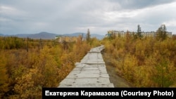 Это дорога, по которой я ходила и в школу, и в художку, и к бабушке, и в гости к подружкам. Мой родной микрорайон Арктика и центральную часть города Билибино разделяло тундровое болото. На Чукотке часто вместо тротуаров используют теплотрассы, потому что они подняты над землей и недоступны для грязи и воды.