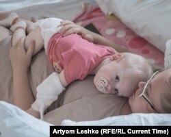 Годовалая София находится в больнице вместе с мамой Оксаной. Поначалу родителей с отрицательным результатом теста на ковид не помещали в палату, чтобы избежать заражения. Теперь вакцинированные или перенесшие вирус взрослые могут оставаться со своими детьми.