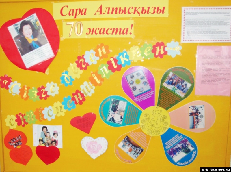 Директор школы пригласил корреспондента нашего радио Азаттык принять участие в линейке по случаю открытия недели «Сароведения». Линейку торжественно открыла преподаватель предмета «Самопознание» Эльмира Косжанова. Она зачитала поздравление с днем рождения Саре Назарбаевой и ознакомила с ее биографией.– Сара Алпысовна родилась 12 февраля 1941 года в селе Кызылжар Карагандинской области. Супруга первого президента Республики Казахстан Нурсултана Абишевича. В 1962 году создала семью. У них три красивые дочери. Старшая дочь, Дарига, родилась в 1963 году. Дочь по имени Динара – в 1967 году, Алия родилась в 1980 году. У нее есть внуки Нурали, Алтай, Айсултан, Венера, Дениза, Тияр. В 2005 году родился правнук Алан, – перечислила Эльмира Косжанова.