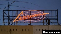 «Салтанат» — неоновая вывеска на одном из домов в центре Алматы, оповещающая о зафиксированных случаях домашнего насилия в стране.
