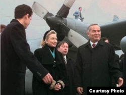 Хиллари Клинтон в бытность первой леди США и президент Узбекистана Ислам Каримов. Ташкент, 1997 год.