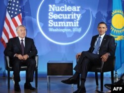 Президент США Барак Обама (справа) и президент Казахстана Нурсултан Назарбаев (слева). Вашингтон, 11 апреля 2010 года.