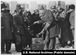 Американцы кормят захваченных в плен большевиков рисом. Январь 1919 года.